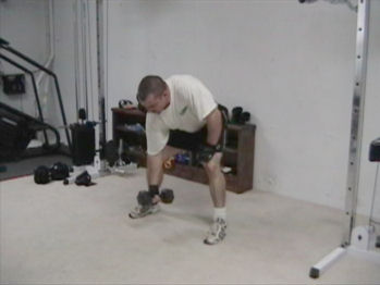 Grab the dumbell and bend over a bit.
