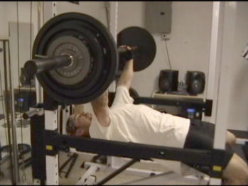 We’re going to literally “shock” your chest muscles into responding here. Load the bar with (or select dumbells) a weight you’d normally be able to get about 12 to 15 “strict” reps in your regular workout.